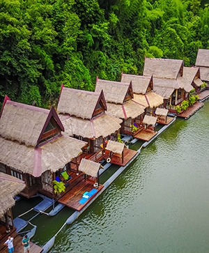 北碧祕境。水上別墅、雙層露天觀光遊河或水上市場、RED SKY酒吧、愜意五日遊