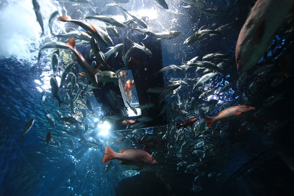 而館內最經典的就屬海底隧道了,一踏進去就會看到各種魚群一一地從身旁悠閒游過,彷彿被海洋包圍起來!