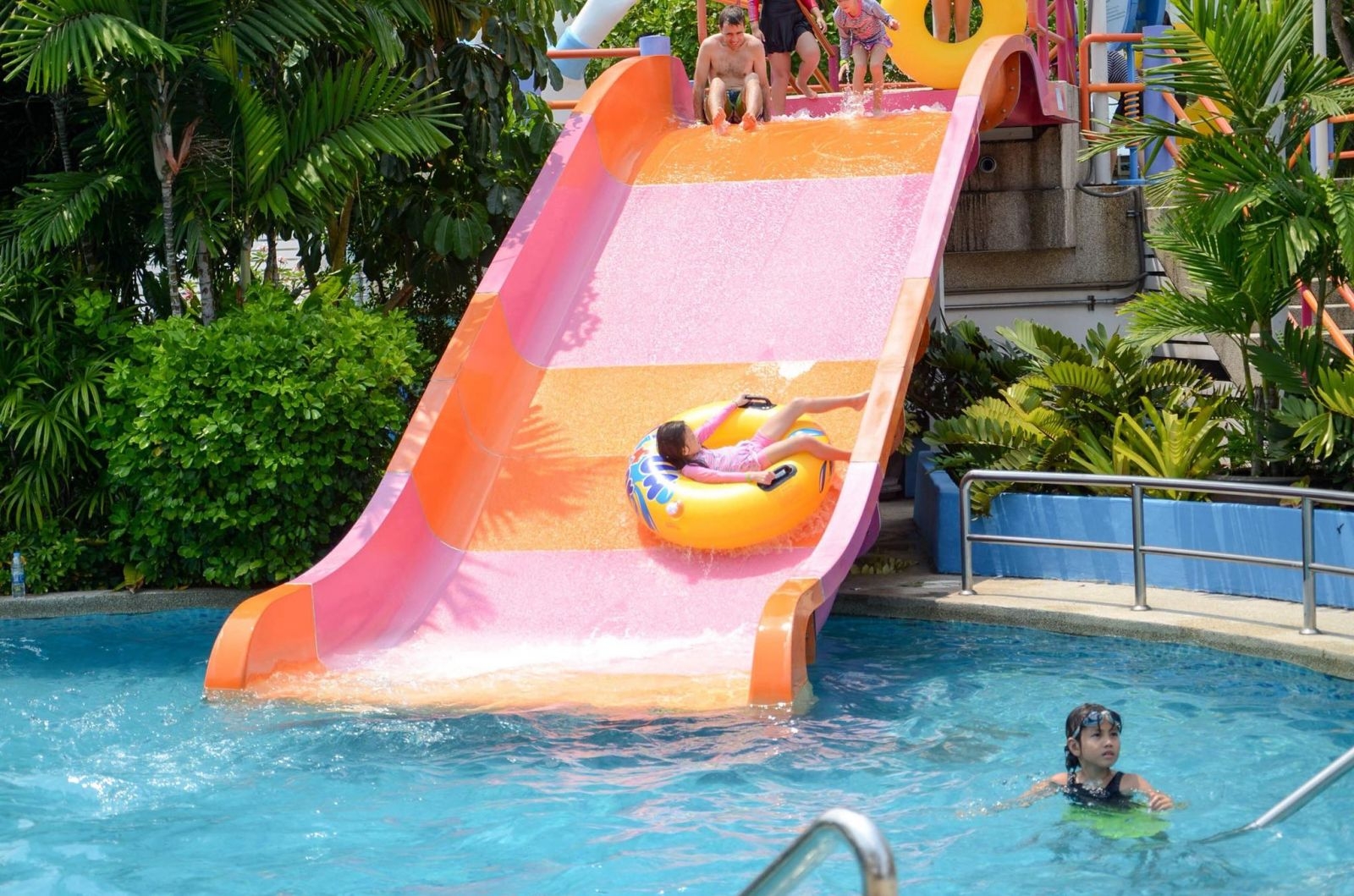 還有高度達到7層樓、全東南亞最高的滑水道,