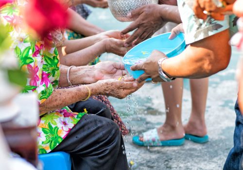 - 傳統意義:“Songkran”源自梵語,意為「移動」或「向前邁進」。這個節日代表著新的開始,通常在水稻收穫後舉行,是家人團聚、向長輩、祖先和神聖佛像表達敬意的時刻。