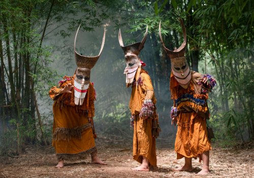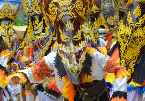 - 鬼臉面具: 參與者會戴上用竹籃、椰殼與稻桿做成的大面具,畫上誇張笑臉或獠牙形狀奇特,並穿著由布料和稻殼製成的戲服。