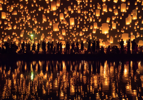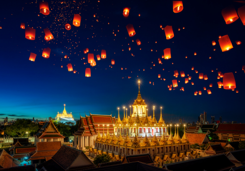 - 核心儀式: 釋放「孔明燈」(khom loi)。成千上萬的紙燈籠被點燃並飄向夜空,象徵著擺脫不幸和厄運,將光明獻給佛陀,是一種功德的行為。