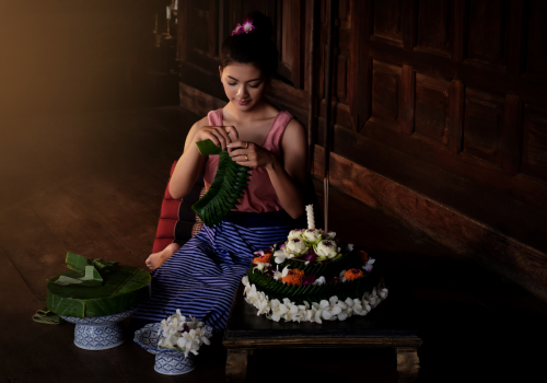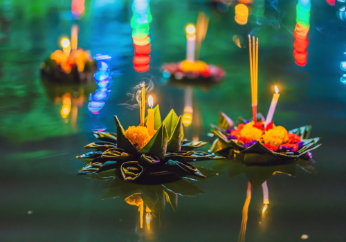 - Krathong 是指用香蕉樹幹或莖製成的小船或籃子,裝飾著香蕉葉、花朵、蠟燭和香。